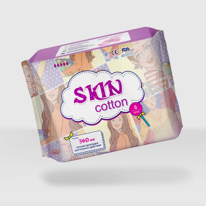 Ночные прокладки Skin Cotton длиной 360 мм созданы для комфортного и гигиеничного использования женщинами во время менструации.