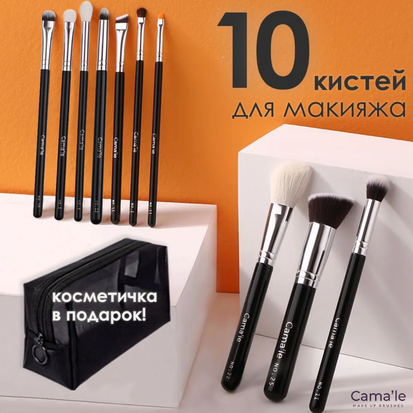 Cama'le набор кистей для макияжа К2 из 10 штук с косметичкой